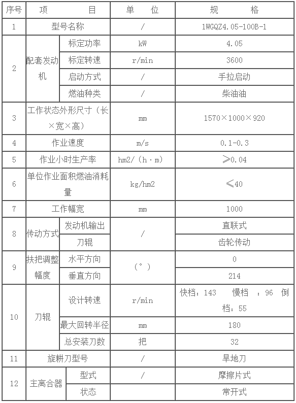 1、快檔143r/min慢檔96r/min,快擋轉速較高,耕作效率更高。